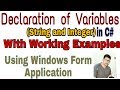 This video describe the procedure to declare the variables interger and String in C# with example and also shown the working of declaration with windows form application. How to declare varriable in C# and .NET, you can see the procedure step by step.